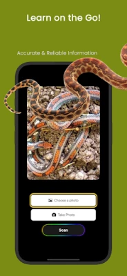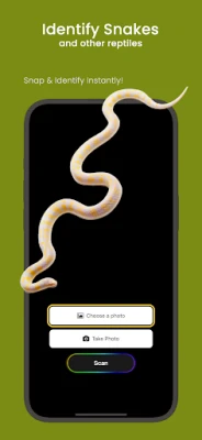 Discover the fascinating world of reptiles with Snake ID! This cutting-edge app allows you to take photos or choose images from your gallery to identify snakes and other reptiles like frogs instantly. Snake ID provides detailed descriptions, interesting facts, and accurate identification of species, helping you learn more about the incredible creatures around you. Perfect for herpetology enthusiasts, wildlife explorers, and curious minds alike.